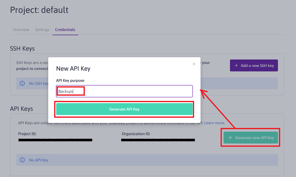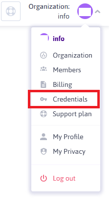 - You also need to generate the Credentials. Please go to the top-right of the screen, expand the menu and select Credentials, or just click this link https://console.scaleway.com/project/credentials
