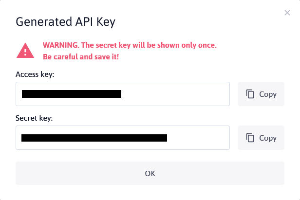 - Enter the API Key purpose and press Generate API key