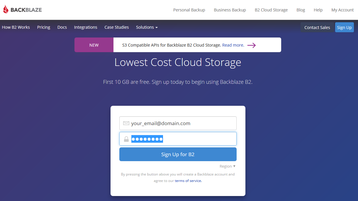 - Go to https://www.backblaze.com/b2/sign-up.html